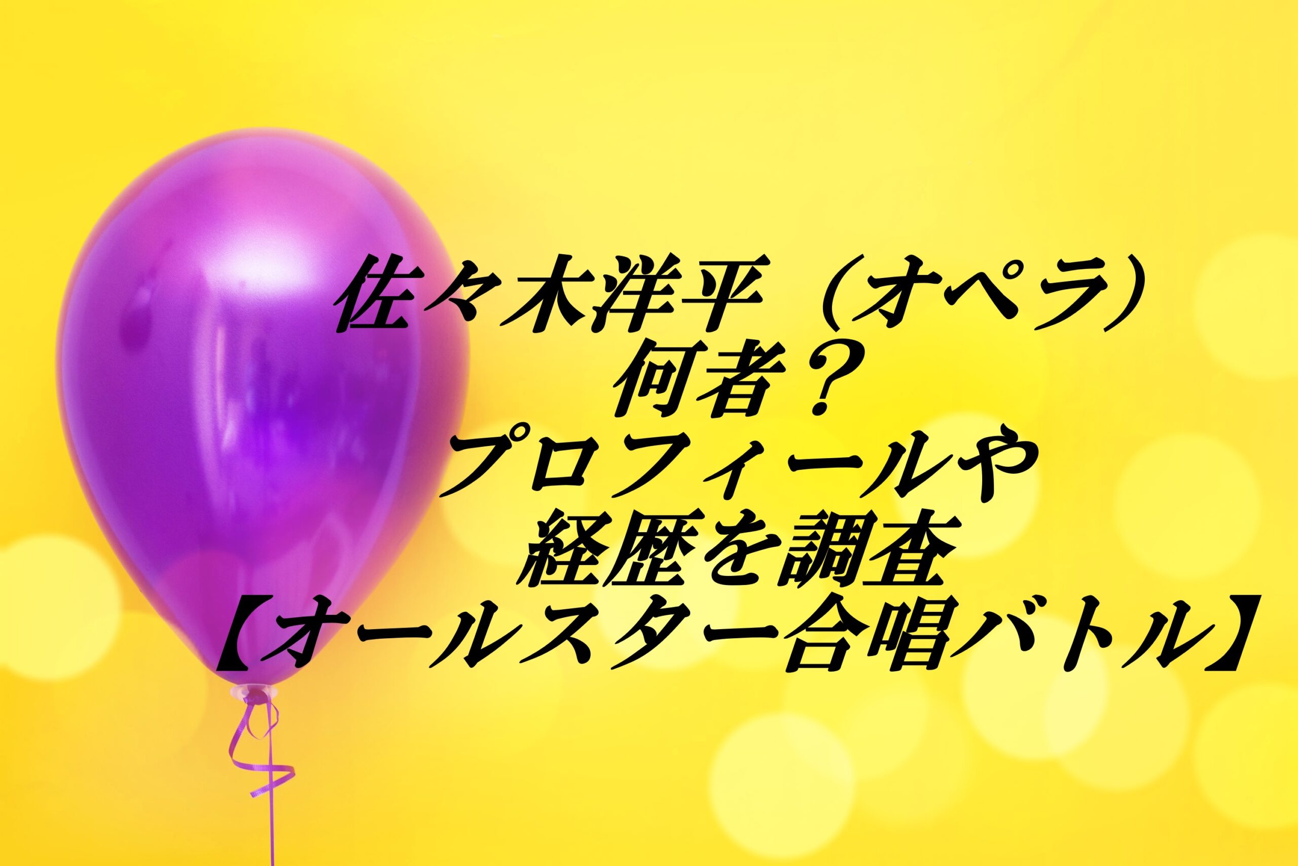 今回『オールスター合唱バトル』への出演が発表された佐々木洋平(オペラ)について調べると、